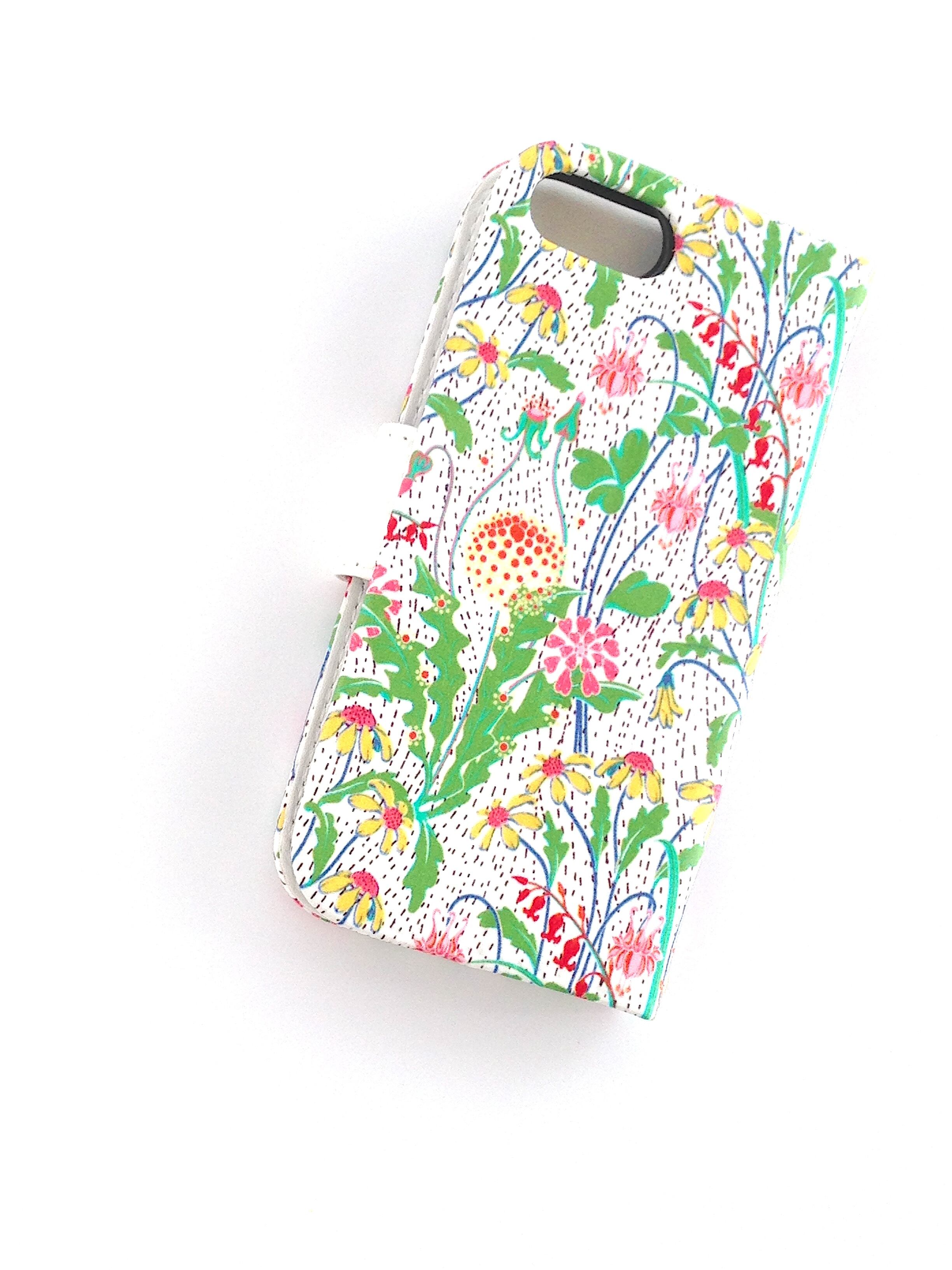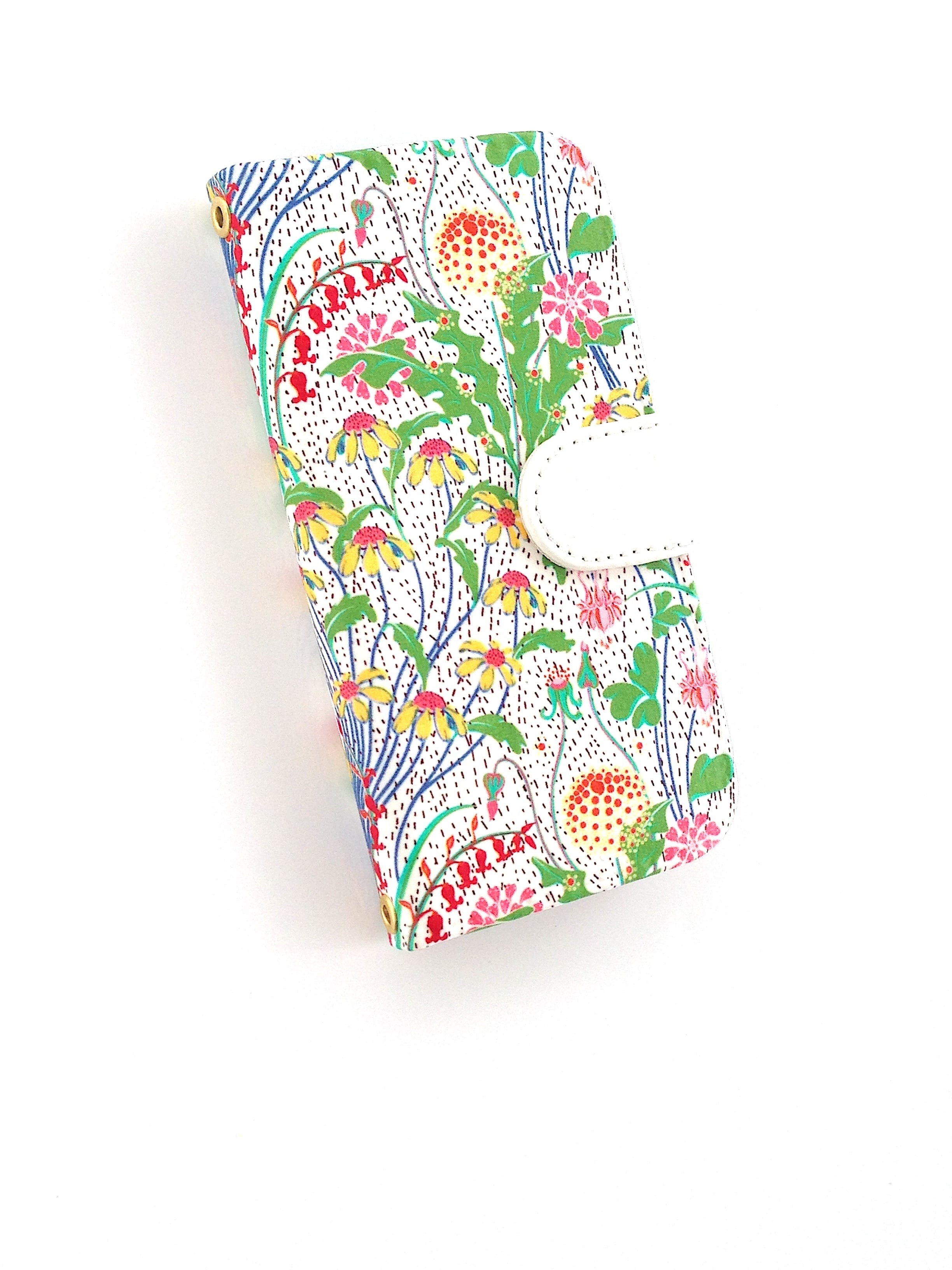 リバティ生地を表紙にあつらえた、手帳型 iphone16 ケース(豊かな草原)です。