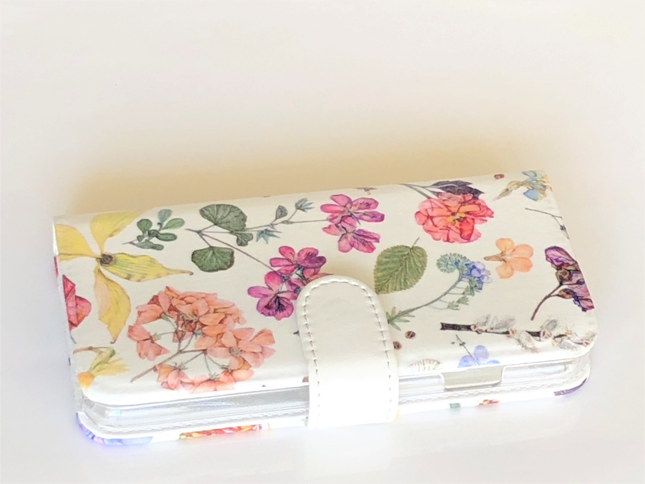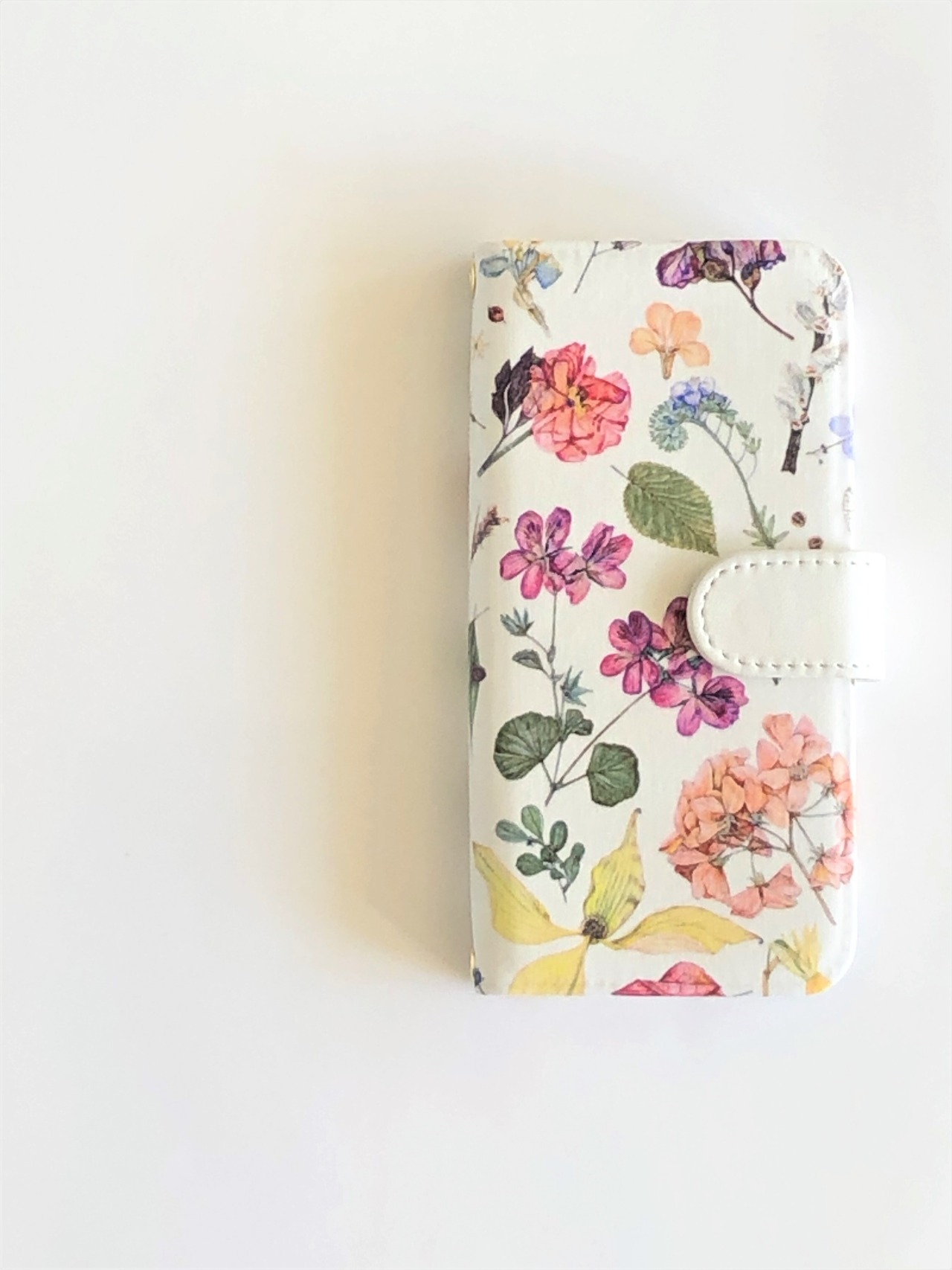 リバティ生地を表紙にあつらえた、手帳型 iphone7,8,SE 2,SE3 ケース(フローラルイブ)です。