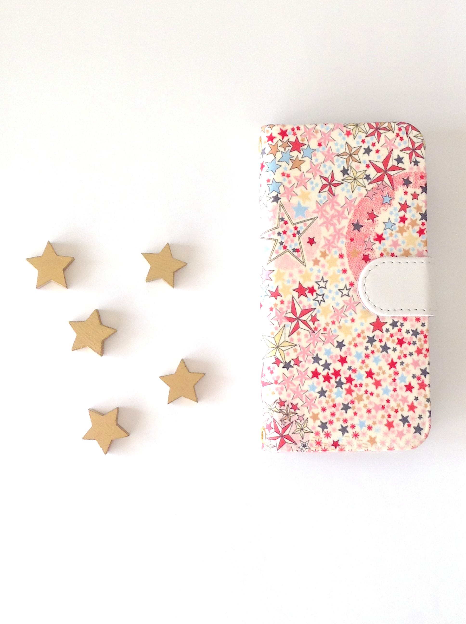 スマホ機種 製作可 『リバティ iphone7,8,SE 2,SE3手帳型ケース(星のきらめき)』iphone16製作可